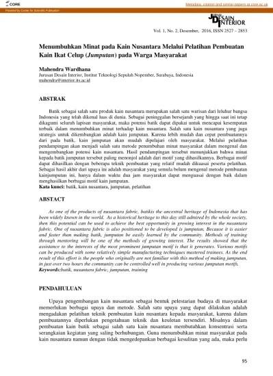 Banyak pilihannya, indah warnanya, ayo kita cintai batik indonesia, dan batik jumputan hasil budaya bangsa. Pertanyaan halaman ini mengulas tentang iklan di internet yang mengambarkan tentang batik jumputan. Informasi apa saja yang dapat kamu peroleh dari iklan tersebut? Informasi yang diperoleh :antara lain banyak pilihannya, indah warnanya , ayo kita cintai batik indonesia. Apr 27, 2021 · jawaban: